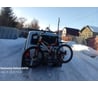 Для перемещения по асфальтовым дорогам на дальние расстояния это хороший вариант. Хотел платформу, но цена решила. Рекомендую для перевозки использовать мягкую защиту деталей и по паре стяжных ремней на каждый велик. Я для защиты использовал энергофлекс для водопроводных труб. Гайцы ни разу не дергали, но может просто везло. За двумя великами на Киа Соренто 2 номер уже не читается. Перевожу со скоростью 110-120 км/ч. Перед покупкой убедитесь, что ось шара вашего фаркопа вертикальна. Между сезонами крепление служит настенным держателем.