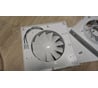 Плюсы: Аэродинамика продумана хорошо. Мотор при длительной работе греется всего до ~50°C. Хорошая производительность. Качественное литьё, ABS-пластик, без облоя. Простой и практичный внешний вид, не испорчен надписями, логотипами и подсветкой. Минусы: Уродский кабель-канал (горб на патрубке) деформирует установочный воздуховод и нарушает герметичность установки вентилятора (можно исправить). Кабель-канал изнутри по всей длине приклеен на термоклей >=[ Обратный клапан так себе, шелестит. Размеры декоративной крышки: 205.5 x 181.5 мм Выпирает от стены на: 49 мм Длина патрубка от уровня стены: 85мм Внешний/внутренний диаметр патрубка: 123/120 мм (в начале), 122/119 мм (в конце) Длина кабель-канала от уровня стены: 60 мм Высота кабель-канала: 3 мм Вес: 811 грамм Цена на июнь 2024: 2208 рублей (в синем магазине) Цена на июль 2025: 2532 рублей (в синем магазине) Все пластиковые детали из ABS-пластика, у всех на внутренней стороне стоит маркировка ABS 09, даже на крышке кабель-канала. Литьё деталей на хорошем уровне. Всё плотно стыкуется и защелкивается, ничего не люфтит, не хрустит. Во время работы не дребезжит. Облоя нет. Лицевая панель квадратная 181x181 мм. Она крепится к корпусу на защелках и небольшим саморезом (лишним, если честно). Крепится к корпусу единственным образом за счёт выпирающего кабель-канала. Декоративная крышка на 4 ножках, которые тоже образуют квадрат 99x99 мм, поэтому эту крышку можно ставить и вертикально и горизонтально. На декоративной крышке нет никаких надписей/тиснений и это прекрасно! Лицевая панель нужна не всем. Иногда полезно видеть работу естественной вентиляции по вращению крыльчатки выключенного вентилятора, но лицевая панель не даёт это сделать. Просто имейте это в виду. Хитрый диффузор способствует хорошему притоку воздуха на крыльчатку. Считаю, тут инженеры - молодцы, потому что при хорошей тяге аэродинамический шум ниже общего шума и гула от работы мотора. Крыльчатка отцентрована не идеально, есть сдвиг в сторону ~0.2 мм. Это заметно если смотреть на край крыльчатки при небыстром вращении. Вибрация всей конструкции такова, что если положить включенный вентилятор на гладкий пол, то вентилятор будет очень мееедленно ползти в сторону. Я бы сказал, вибрация несущественная. Кабель-менеджмент без изысков. На стороне с винтом есть прорезь, за неё можно поддевать крышку пальцами, а также завести туда питающий кабель толщиной до 3 мм. Внутри парочка пластиковых зацепов для кабеля и бесполезные пластиковые штырьки, в комплекте имеется один пластиковый прижим с саморезами. А вообще, под лицевой панелью много свободного места, там можно хранить излишки питающего кабеля.