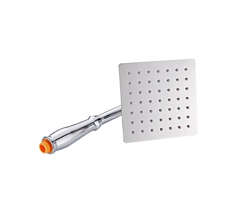 Хорошее качество литья. Без зусенцев и облоя. Крупные капли как и из стандарного верхнего душа в душевой кабине с крышей. Большой размер лейки 20х20 см.