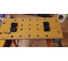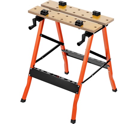 Купил по акции за 1044. В комплекте было всё. Собрал легко. Комплектующие нормальные. Зажимает крепко. Стоит ровно. Складывается довольно компактно. Гораздо лучше, чем бояться пропилить обеденный стол. Конструкция простая, даже если что-то сломается можно будет починить, просверлить и укрепить уголками и т.п. Верхние доски тоже меняются без проблем на любые. Верх стоит на 4х салазках по четыре самореза каждая.