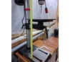Станок собрал за 5 минут, подложил только свои шайбы под болты крепления стойки и под ручки затяжки стола, смазал пиноль. Родной патрон не ставил, поставил быстрозажимной патрон с КМ2 от токарного станка. Он правда без лапки на конусе, но это не мешает его выбить клином, отверстие в пиноли достаточно большое. Работает тихо, ощутимого люфта пиноли нет. Останавливается очень быстро, наверно стоит тормоз на двигателе. По отношению к столу пиноль стоит под 90 градусов, ничего не регулировал. Вариатор работает прекрасно, шкивы качественные, единственное что мне показалось, что ремень прослаблен, регулировки натяжения ремня нет, только если шайбы под мотор подкладывать. Лазерное перекрестие настраивается очень просто, лучи сфокусированы очень хорошо. Ограничение глубины сверления сделано несколько непривычно, с помощью диска с барашком на валу опускания пиноли. До покупки этого станка пользовался дрелью на стойке, жесткость у станка на несколько порядков лучше.