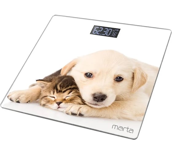 Весы напольные MARTA MT-1608 котенок и щенок, сенсор, встроенный термометр 37241