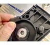 При распаковке шлифмашины был обнаружен один резиновый демпфер, лежавший отдельно от подошвы (см. фото). Вставить его на место оказалось непросто. Пришлось снять сверлом фаску у отверстия, смазать, и лёгким ударом молотка забить. Уплотнительное войлочное кольцо короткое, присутствует щель (см. фото). Кольцо нужно извлечь и аккуратно, равномерно растянуть. Прямоугольная подошва не имеет прижимной пружины, хотя места для её установки присутствуют. Примерно, половина объёма рыли летит мимо, а не в контейнер. Подключение к пылесосу очень желательно.
