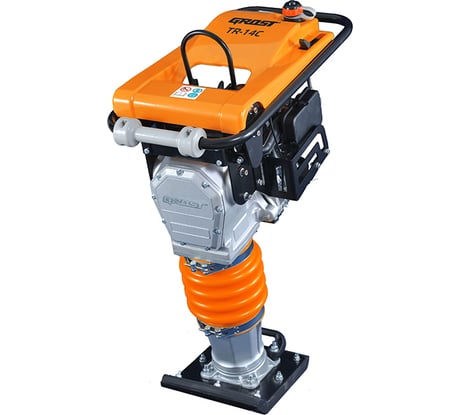 Хорошо гасит обратный удар, рукам не больно в процессе работы. Площадка трамбовочная большая, работу получается делать быстро. Большие круговые рукоятки, можно как одну работать так и вдвоем, и в том и в том режиме держать трамбощик удобно.