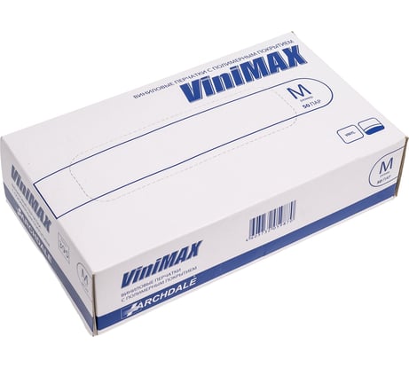Отзыв Перчатки универсальные ARCHDALE ViniMax виниловые, неопудренные, гладкие, белые, 50 пар, р.M B395M