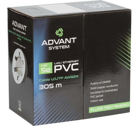 Отзыв Кабель витая пара Advant E-U24PW категория 5е, U/UTP, 4P, AWG24, оболочка PVC, цвет: белый, ADV5e-U24PW (305m)