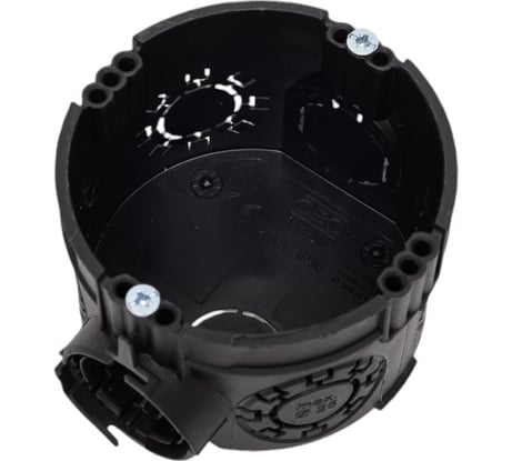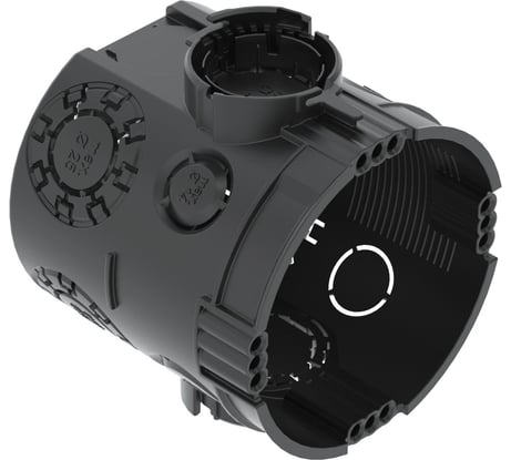 Классное крепкое байонетное соединение коробок между собой. По три отверстия под саморезы если надо сдвинуть немного розетку чуть-чуть по горизонтали или вертикали. Мембранные вводы не позволяют залезть алебастру внутрь коробки. В серии есть отличные крышки из мягкого пластика, которые защищают внутренность подрозетника от попадания алебастра или штукатурки.