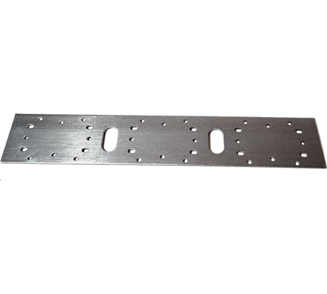 Монтажная планка для одинарной водорозетки не отличается идеальной геометрией. Общая длина изогнутой планки составляет 168 мм, ширина — 40 мм, а толщина металла — 1,5 мм. Для установки планки необходимо сделать штробу в стене. Длина штробы должна быть 90 мм, а глубина — 25 мм. В планке предусмотрено четыре круглых отверстия диаметром 5,5 мм для крепления к строительной конструкции и два фрезерованных отверстия размером 10,5×20 мм. Чтобы закрепить водорозетку, в планке имеются восемь круглых отверстий диаметром 3 мм (без резьбы) и четыре фрезерованных отверстия размером 3×5 мм. Обратите внимание, что не все виды водорозеток подойдут для этих отверстий.