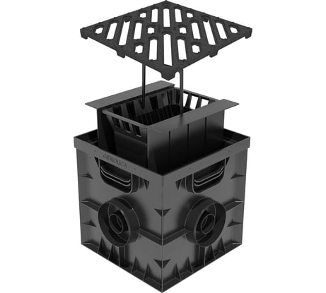 Покупал для дренажа на участке, в комплекте идет сетка от листьев,в крышке можно вырезать отверстие под размер своей трубы. Собрал , всё работает.