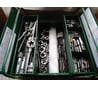 Толщина металла около 1 мм наверно. В руке очень хорошо держится за счет двух рукояток. Верхние секции разделены на отсеки для мелочей. На дне ящика есть выштамповка под ножки.