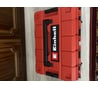 Прочный Надежный Вместительный Внутри есть дополнительный съёмный отсек для хранения мелочи Единая система Einhell E-Case M Может быть в системе не только нижним ящиком, но и стоять закрепленным на другом ящике