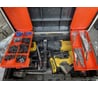 Подобной конструкции ящика у меня раньше не было (я даже не знал про такие), поэтому я просто балдю от него ))) Есть, как я понимаю, оргинал девольтовский, но стоит он в разы дороже, хотя, может быть, он и лучше. Но за эти деньги, думаю, более чем. В верхнем отсеке оставил только одну штатную перегородку на её месте, а из двух других перегородок срастил одну длинную вдоль. Получилось уложить скрутку с 16 рожковыми комбинированными ключами, из которых самый большой 34х36, 25 глубоких головок 1/2" от 9 до 34 мм, 2 удлинителя, переходник 3/4"-1/2" и карданчик, 350-граммовый тюбик графитки, 250-граммовый и 100-граммовая упаковки Литола. В нижнем отделении сбоку 200-граммовый WD-40, ещё 2 аналогичных спрея и маслёнка на 200 мл. Для масштаба положил 12-вольтовый оригинальный шуруповёрт DeWALT (вместо него потом будет аккумуляторный гайковёрт и, возможно, аккумуляторная болгарка). Со временем можно заменить пластиковые защёлки верхнего отсека на металлические.