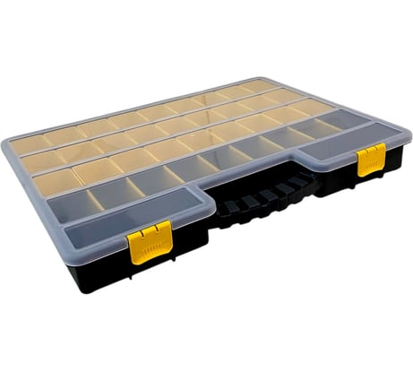 Глубокий органайзер, подходит для хранения длинных метизов. Производитель "косячит" и плохо отслеживает качество изготовления съёмных вставок этого органайзера: вставки на несколько миллиметров более узкие, чем нужно, поэтому постоянно вываливаются из своих посадочных мест внутри органайзера. Я сам вклеил эти вставки, чтобы нормально держались, сжал на сутки струбциной снаружи органайзер напротив вставок чтобы сузить его, только так держатся вставки.