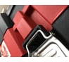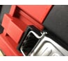 Несколько неудобно для меня организован верхний отсек. В нём вставка. А вот перегородки, которые идут в комплекте для нижних отсеков не подходят по высоте. Индивидуально разделить верхний отсек не получится. Придётся пользоваться как есть. Хотя мне не придётся. Сделал возврат товара ненадлежащего качества. Сломать невозможно пластик на защёлке, а значит это заводской брак в литье. Смотрите внимательно на защёлки...я не посмотрел и оказалось что скоба нижняя крепленич защёлки выскакивает при открывании. Наверно она может выскочить и при переноске. Я не грузил и не переносил. Сразу вернулся в магазин и сделал возврат. Если бы меня не поджимало время с подарком, то я бы сделал перезаказ и дождался целого чемодана, а не возврат денег. Так как этот органайзер действительно хорош... у меня такой четыре года в работе и нет проблем. Думаю что этот случай единичный. На фото видно как должно быть и как есть. Левый замок без брака, правый ( который вылетает) с браком.
