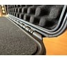 Ну внешне кейс смотрится ничего. Размеры в описании указаны внутреннего пространства. Размер основного внутреннего ложемента 275х165х90мм. Под ложементом уложен слой паролона толщиной 10мм и в верхней крышке вклеен поролон толщиной 20мм. Внешние габариты 300х205х143мм. Замки откровенно слабо притягивают. Открываются буквально ноготком. По периметру крышки есть резиновое уплотнение. Никаких клапанов на кейсе не присутствуют. Ножки на нижней части кейса пластмассовые. Ложемент из ячеек 10х10мм. На бирках что-то там про Японию сказано, но Японии и близко не было. Шильдик лучше бы вклеили, но нет, прикрутили саморезами с головками впотай там где это не предусмотрено. От чего головки саморезов торчат.