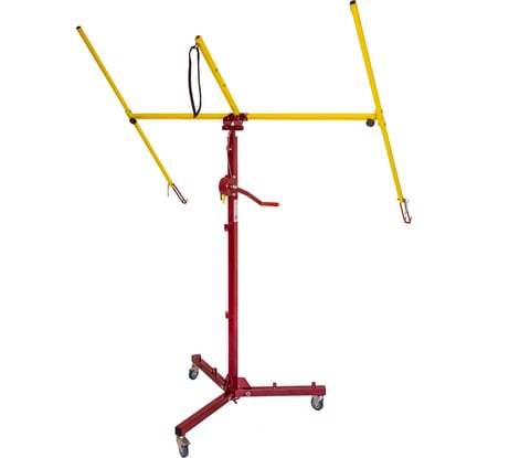 Для универсала-одиночки незаменимая штука. Даже подсобник или напарник не способны полноценно её заменить при монтаже ГК. Когда двумя головами и тремя руками придерживаешь лист, оставшейся свободной рукой орудуешь шуруповёртом. Уложил лист на площадку. Неторопливо разметил и просверлил отверстия под выводы коммуникаций, если необходимо. Спокойно неторопливо непосредственно на листе зафиксировал закладные под навесное оборудование, если необходимо. Подкатил всё сооружение на место, приподнял. Протянул провода в отверстия, если необходимо. Прижал лист к каркасу. Тщательно выровнял, выдерживая необходимые зазоры. И неторопливо начинаешь крепить, как положено, продвигаясь от одного края листа к другому. Не опасаясь, что у подсобника-напарника руки устанут придерживать лист. И всё это в одну каску! При сборке каркаса в больших помещениях также выручает. Нарезал, накидал железяк пока без подвесов. Серёдку подпёр подъёмником, чтоб каркас сильно не провисал. Спокойно продолжаешь работу. В общем, категорически рекомендую этот подъёмник.