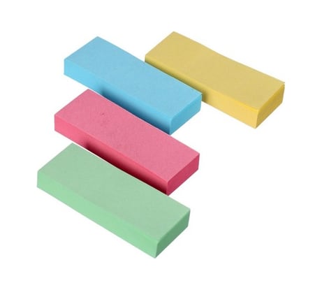 Обычные закладки в четырёх пастельных тонах. Изготовлены в марте 2023 года. Клей слабоват, но держит.