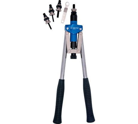 Железяка хорошая, сечение элементов выглядит достаточным, под 10 резьбу, заклепывает плавно без рывков, усилие на ручках предсказуемое