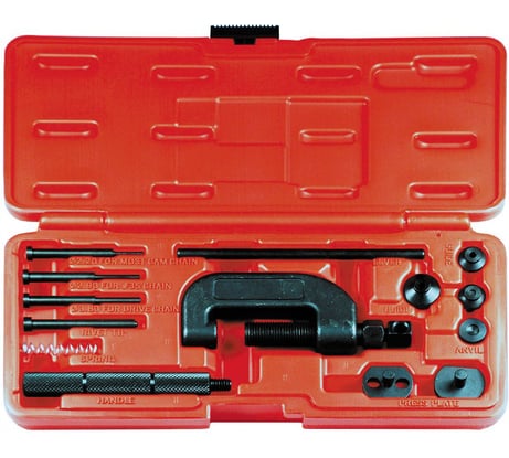Одноразовый набор. Хватило на замену одной цепи. При расклепке все штоки для расклепки погнуло. А при заклепке новой цепи он вообще рассыпался. В целом не рекомендую.