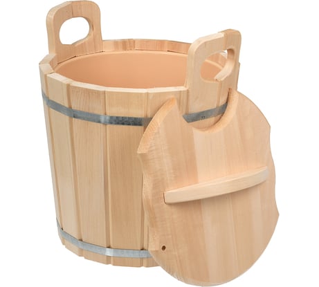 Липа – прекрасный материал для бани! При нагревании до больших температур на ней не появляется смола, она издаёт приятный аромат и, как говорят, даже лечит простудные заболевания! И еще огромный плюс – липа почти не нагревается. Всё это делает предметы из этого материала наиболее подходящими для парилки. Когда передо мной встал вопрос выбора запарника, я взял вот этот вариант на 20 литров. Помимо прямого назначения, а именно запаривания веников, запарником можно и самому окатиться водичкой, и на камни поддать как следует! В данном запарнике есть вставка из нержавеющей стали, благодаря чему он герметичен. Диаметр внизу 30 см, вверху – 35. Есть удобные ручки для переноски. Ручки, как я уже сказал, почти не нагреваются при больших температурах. Пользоваться одно удовольствие. Не забывайте выливать воду после каждого использования и насухо высушивать запарник, перевернув его вверх дном. Нет крышки, но это не такая проблема, я уже изготовил самостоятельно. Запарник на 20 литров, в нём запросто помещаются два хороших веника. В общем, вещь отлично прижилась в нашей баньке, каждый раз пользуемся и радуемся!