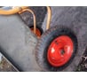 Колëсико хорошее, поставленно в замен потрескавшегося и лопнувшего. Полнная тачка ПГСа выдерживает. Эксплуатация не частая. Наличие подшибников в колëсике.
