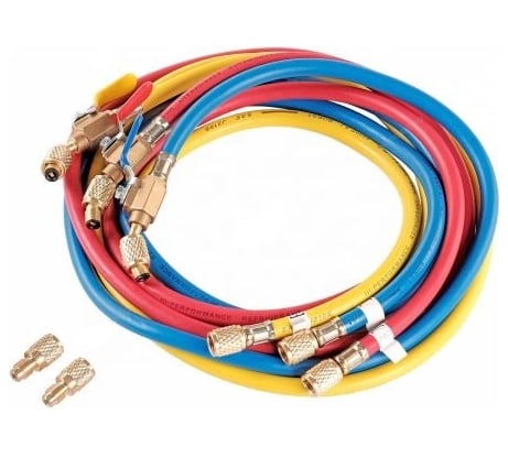 Прочные, плотные шланги, с хорошими соединениями и шаровыми кранами. Для 410 хладагента.