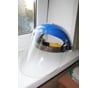 Закрывает хорошо, защитное "стекло" трудно поцарапать. Кошу траву триммером с этим щитком уже 2 года (по 50 соток каждые 2-3 недели). Моется лекго под водой. Оставляю иногда невымытым после кошения, так куски слизняков превращаются в камень, после отмачиваю чуть и мою с мылом - стекло без царапин, хотя любые другие щитки уже б после такого были все матовые из-за царапин.