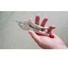 Если приноровиться, можно работать одной рукой, но это не совсем удобно, в раскрытом состоянии ручки распахиваются невероятно широко. Механизм зажима очень требователен к смазке, на машинном масле и всяких универсальных составах заклинивает, хорошо себя показала только достаточно дорогая WURTH HHS-2000. И неавтоматические зажимы все же выигрывают по силе зажатия, ее и подстроить точнее можно, и раскрывать их после сильного зажатия легче. По силе зажима особенно заметно, когда надо начать работу: если ничего не зажато, зажим (комфортно) защелкивается только на слабое сжатие, поэтому надо его раскрыть, выкрутить регулировочный винт и только после этого зажимать, иначе сала зажима будет слабовата. По удобству ручек самые удобные автоматические зажимы делает Kreg, но, к сожалению, без формата длинногубцев-пассатижей (и обрезинка на ручках, конечно, уже была бы не очень под сварку).