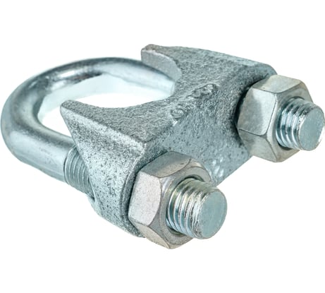 Использовал для крепления крюка буксировочного троса канатного типа диаметром 12мм. Трос зафиксирован достаточно крепко. Для пущей надёжности можно использовать и по 2 зажима с каждой стороны. В моём случае дополнительным креплением служит проволочная стяжка в оплётке. Гайки крепления пришлось закрутить почти полностью. Думаю, что здесь лучше бы подошёл зажим меньшего размера.