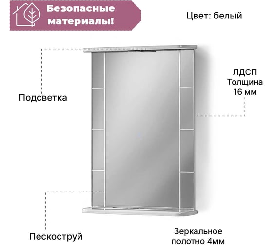 Зеркало Акваль ЮНИТ 04 60 00 N Белое 60 см ЮНИТ 04 60 00 N