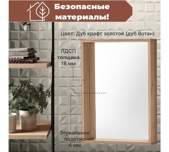 Зеркало Акваль ЮНИТ Дуб 60 см ЮНИТ.04.60.60.N