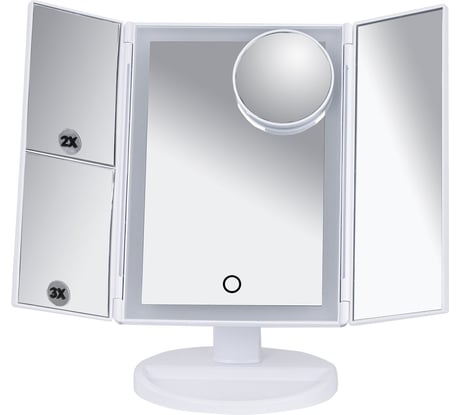 Очень удобное зеркало для макияжа! Подсветка с тремя режимами — просто находка, теперь макияж получается идеально в любом освещении. Сенсорное управление работает без сбоев, подставка устойчивая, держит крепко. Рекомендую всем, кто любит делать макияж дома!