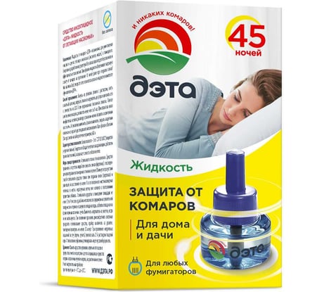 Купил зимой 2 штуки. Лежали до лета. Как появились комары начал включать на ночь. Эффекта ноль. Комары летают вокруг фумигатора, и им "да фени" что он работает... (Не один час). Думал флакон такой попался, - поставил второй из купленных......... - Та-же история. Не работает вообще. Фумигатор горячий, а эффекта НЕТ. Лежу в кровати, фумигатор в розетке в 20 сантиметрах от меня, и вокруг нас обоих порхают комары. Худшей жидкости ещё не встречал. Попадались жидкости которые только усыпляли комаров, и как только вырубаешь фумигатор они опять начинают летать, это-же жидкость вообще никак не работает.