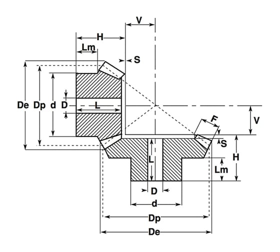 Коническая пара прямозубая EMT тип В, i=1:2, М=2, Z=15/30 C28B300