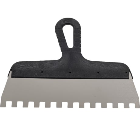 При работе с укладкой плитки - незаменимый помощник. Позволяет равномерно наносить клей на поверхность. Пластиковая рукоятка удобно лежит в руке, вообще, в целом, обеспечивает комфорт во время работы