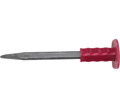 Рукоять и защита руки выполнены из жесткого пластика. Сломалась на второй промах легким молотком. Лучше резиновую защиту. К самой скарпели вопросов нет.