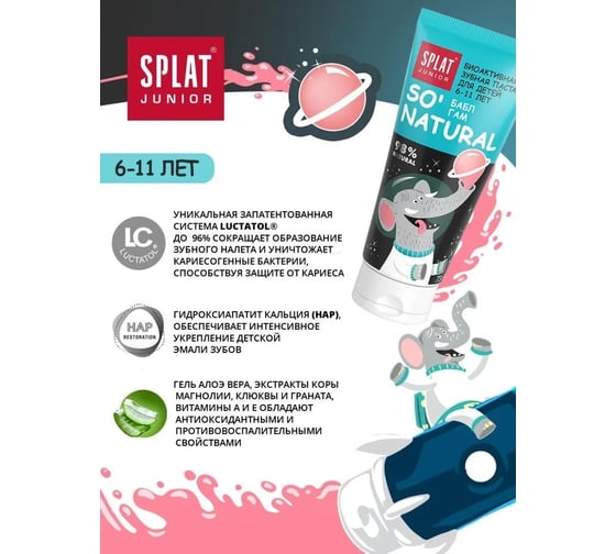 Детская зубная паста SPLAT JUNIOR 6-11 SWEET TANGERINE сладкий мандарин 73 г 112.11034.0101