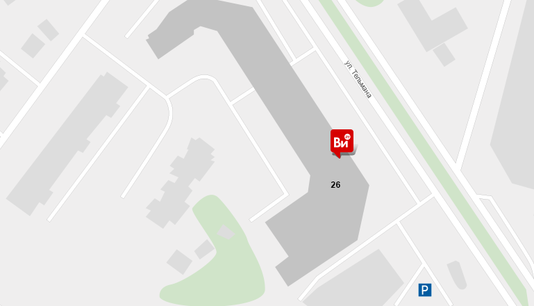 Из центра города от памятника быку-солевозу направляйтесь на северо-запад по улице Тельмана 500 метров. Далее разворот на перекрестке с улицей Пушкина. Через 130 метров будет съезд направо на парковку торгового центра «Меркурий».