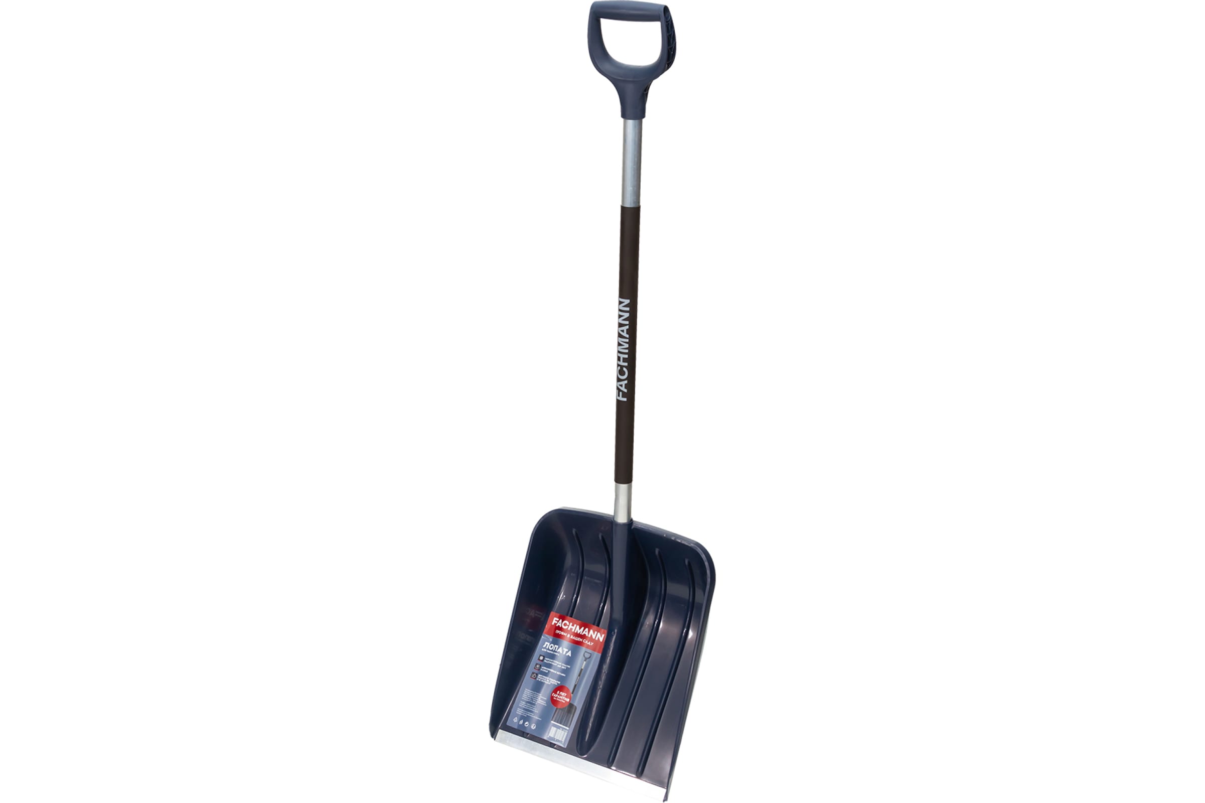 Первая – стандартная лопата для уборки снега. Яркий пример – Fachmann Garten 05.001. Это универсальный вариант: можно и дорожки перед домом почистить, и парковочное место. От обычной совковой такая лопата отличается габаритами и формой ковша. Он шире, глубже и имеет высокие борта. Можно за раз набрать большое количество снега.
