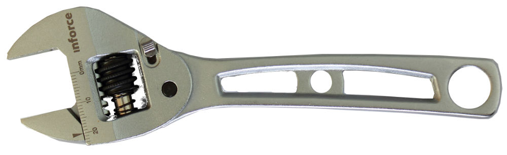 Что заменит набор рожковых ключей? Конечно, их универсальный собрат – разводной ключ. Изделия Inforce представлены традиционными инструментами и моделями с трещоткой. Последние наиболее удобны для работы с крепежом в труднодоступных местах – вам не придется переставлять инструмент для откручивания элементов в стесненном пространстве. В ассортименте разводных трещоточных ключей представлены модели длиной 6, 8, 10 дюймов. Среди обычных моделей – от 6 до 12 дюймов. Максимальное расстояние между губками может достигать 20, 32 и 37 мм.