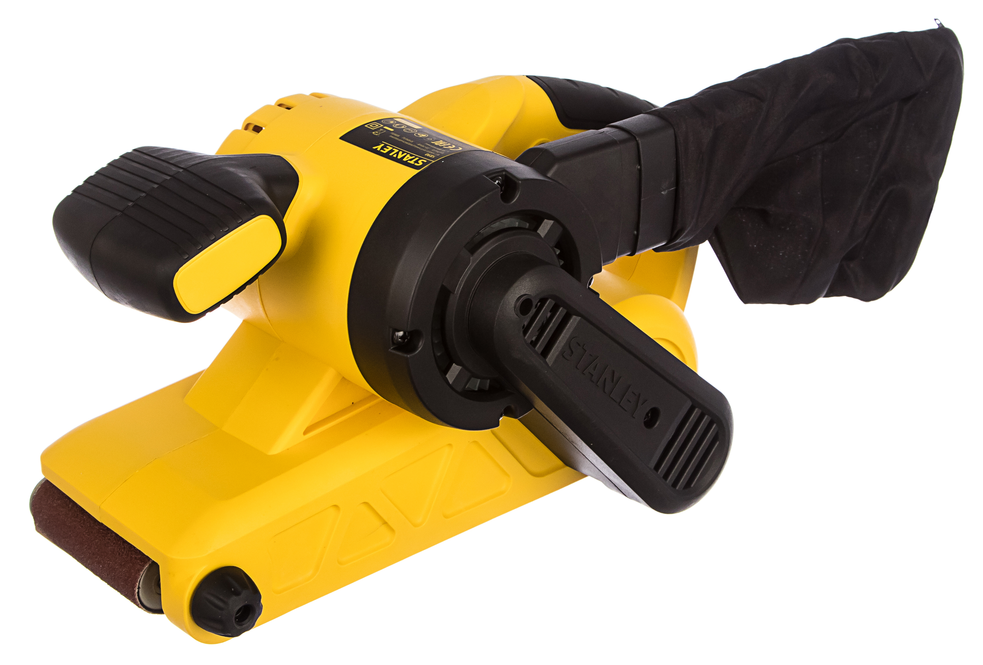 Ленточная шлифмашина STANLEY SB90 – мощная и высокопроизводительная модель. Двигатель 900 Вт развивает обороты для достижения скорости вращения ленты до 380 м/мин. Ширина ленты – 75 мм, длина – 533 мм. Это дает большую площадь соприкосновения рабочей части с обрабатываемой поверхностью для быстрой шлифовки. В комплекте идет пылесборник, чтобы образующаяся пыль не препятствовала работе.