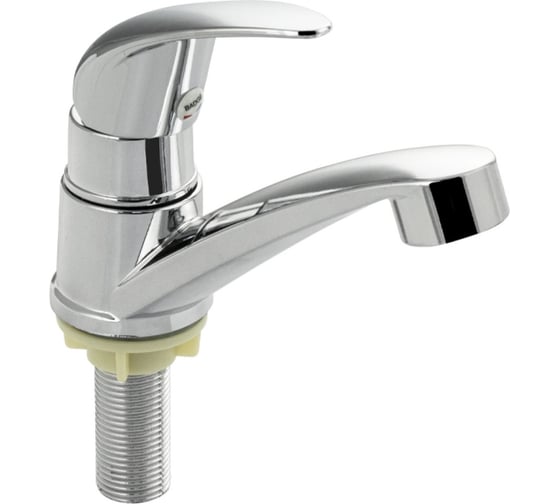 Кран на одну воду, из высокопрочного пластика АБС, хромированный, с аэратором для экономии воды, шаровый, с плоским коротким изливом.