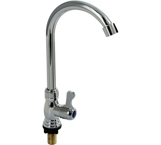 Кран на одну воду, из высокопрочного пластика АБС, хромированный с аэратором для экономии воды, с высоким изливом. Крепление резьба - гайка. Кранбукса м/к, ручка - флажок, поворот на 90˚.
