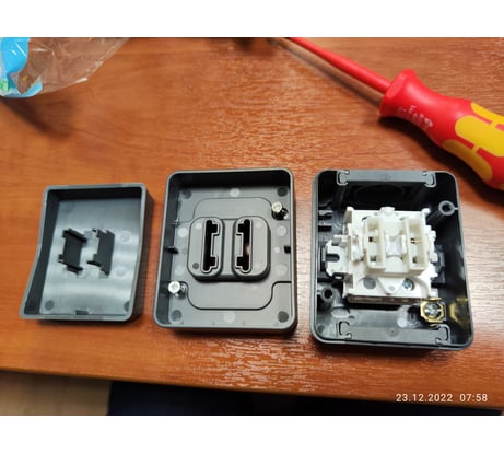 Под артикулом ATN544061 переключатель, а не выключатель. Переключатель собран в России, разбирается просто, при этом не наблюдается лишних люфтов. Считаю большим плюсм мембранный ввод для кабеля из мягкой резины, который так же можно снять для удобства монтажа.