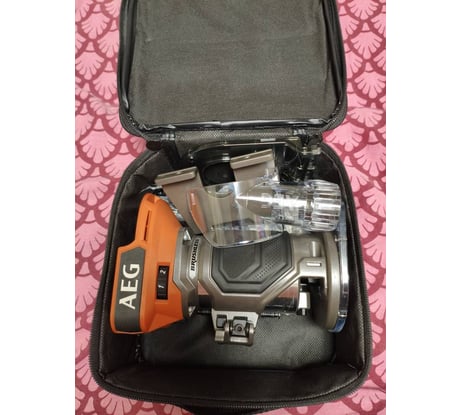 Берешь в руки, понимаешь-вещь. Впрочем как и все инструменты АЕГ. Эргономика отличная,, всё на своих местах. Параллельный упор, подошва под шину, правда пока непонятно под какую, толи универсальную, то ли свою какую то. И еще комплектация указана коробка, но он в сумке, очень удобной к слову.