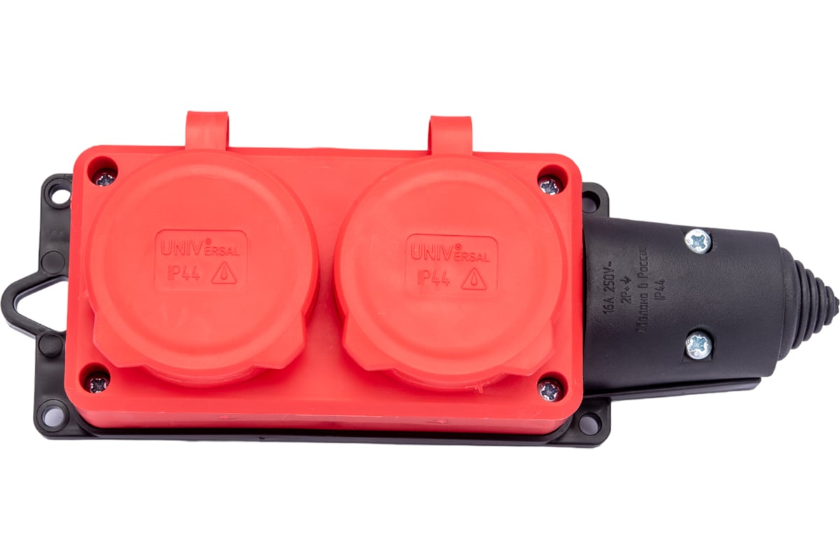 Расходные материалы для 2-х местная однофазная колодка UNIVersal с заглушками компакт с заземлением каучук 16а 250в ip44 цвет красный еврослот 3072