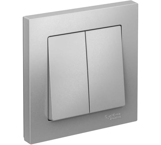 Выключатель Systeme Electric (ранее Schneider Electric) серии AtlasDesign (в сборе, цвет алюминий) 2-клавишный.