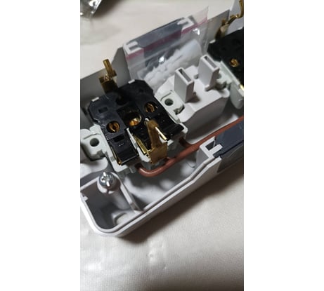 Слабенькая припайкапластиком металлической фиксиркющей пластины: даже при аккуратном закручивании пластиковая плюшка обрывается. Для решения этой проблемы тонким сверлом (1,5-2 мм) по центру плюшки сверлится отверстие и внего закручивается небольшой и коротенький саморез типа «клоп». Благодаря хорошему пластикудержится отлично) В двойных розетках стоят штатные перемычки 1,5 мм2 нужно менять на 2,5