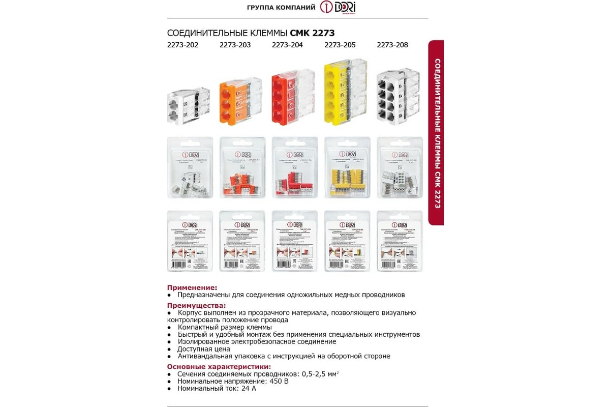 2-проводная соединительная клемма DORI СМК 2273-202 (6 шт.) 46295