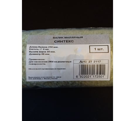 Валик 2117 250 мм СК КАСКАД с ворсом 18 мм из полиакрила и полиэстера под бюгель 6 мм, рассчитан на наружные работы с фасадными красками. Валик рекомендуется для обработки поверхностей с грубой фактурой и неровностями. Полиакрил в составе шубки повышает ее формостойкость и устойчивость к разрывным нагрузкам. Обеспечивает равномерное нанесение ЛКМ без разводов и не оставляет ворса на поверхности, что позволяет добиться превосходного результата. Благодаря классической конструкции с трубкой внутри , ролик устанавливается и снимается за несколько секунд.